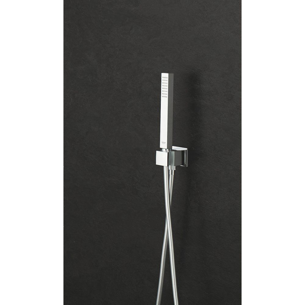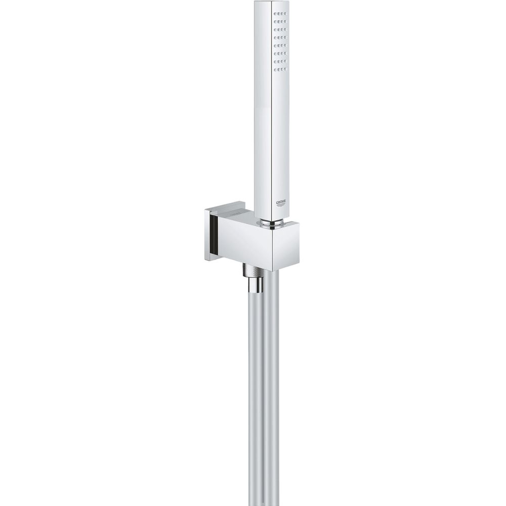 Душевой гарнитур Grohe Euphoria Cube Stick 26405000 имеет высоту 27 см и лейку диаметром 6 см. Лейка оснащена одним режимом струи. Длина душевого шланга составляет 125 см, и он выполнен из пластика, усиленного стальной проволокой для надежности. Особая конструкция мест соединения шланга с лейкой и смесителем предотвращает перекручивание. Гарнитур дополнен функциональностью против известковых отложений и легким очищением от налета. Минимальное давление для эксплуатации — 1 бар, а термостойкость шланга выдерживает до 70 градусов. Страна-производитель — Германия, гарантия 1 год.