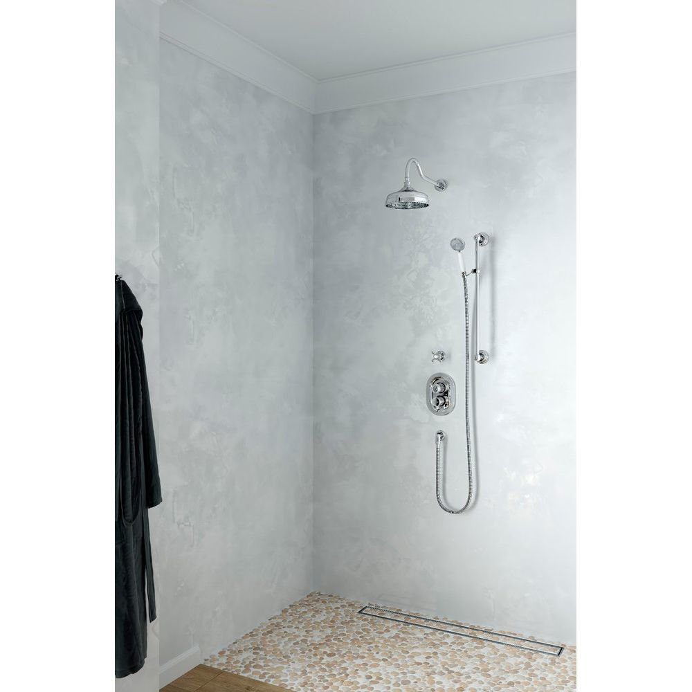 Душевой гарнитур включает в себя душевой шланг длиной 160 см, выполненный из металла, и душевую штангу высотой 58.5 см. Однорежимная лейка обеспечивает комфортный поток воды, удовлетворяющий повседневные потребности. Все элементы комплекта изготовлены из высококачественной латуни, что гарантирует долговечность использования.