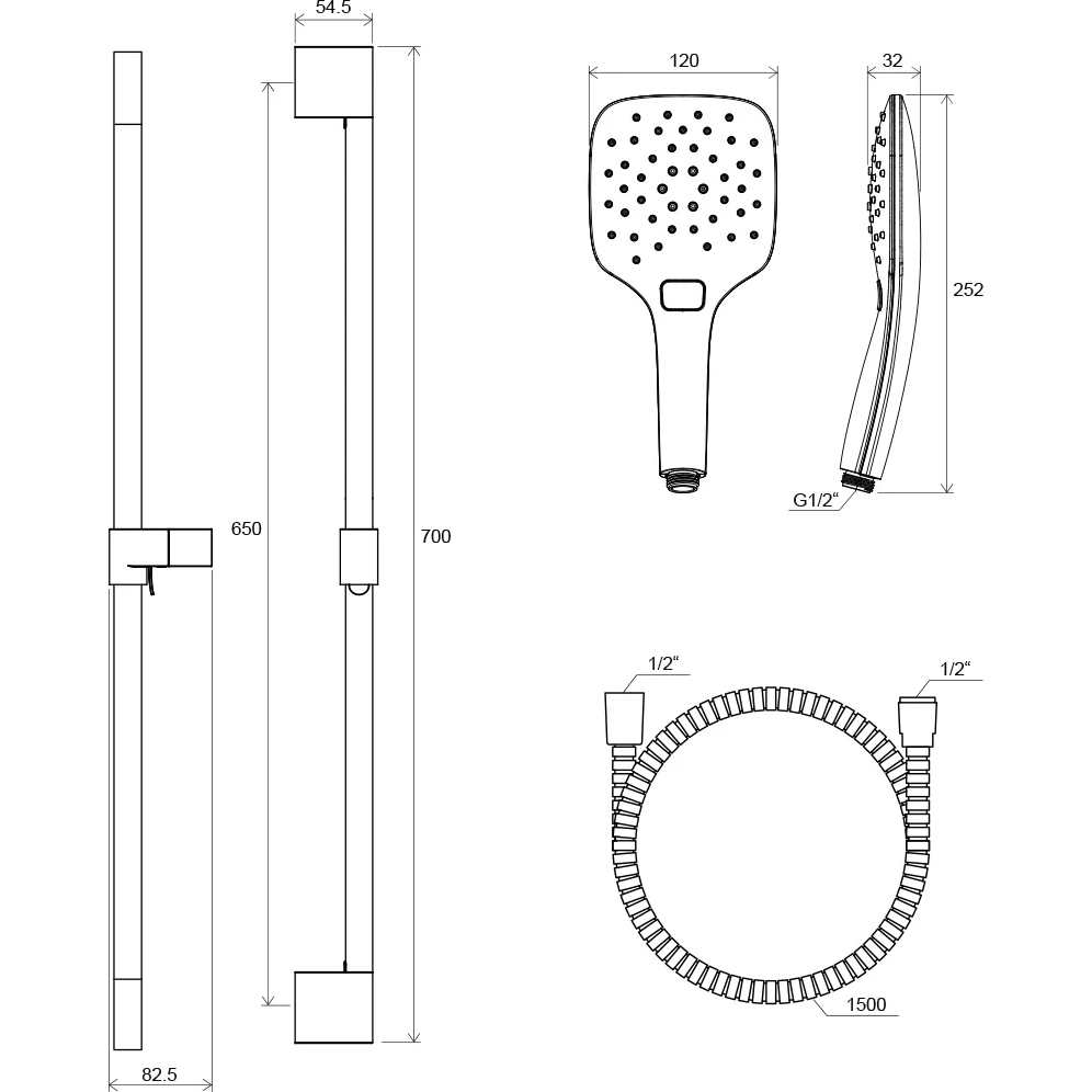 - душевой шланг: 150 см из прочного пластика