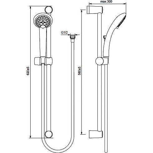 Высота душевого гарнитура составляет 62.5 см, что обеспечивает комфортное использование. Пластиковая лейка диаметром 8 см обладает тремя режимами струи для вашего максимального удобства. Длина шланга — 175 см, что обеспечивает свободу передвижения и комфорт при принятии душа. Особое внимание уделено системе экономии расхода воды, помогающей значительно сократить потребление. Все соединения шланга с лейкой и смесителем оснащены поворотным конусом или подшипниками, препятствующими перекручиванию.