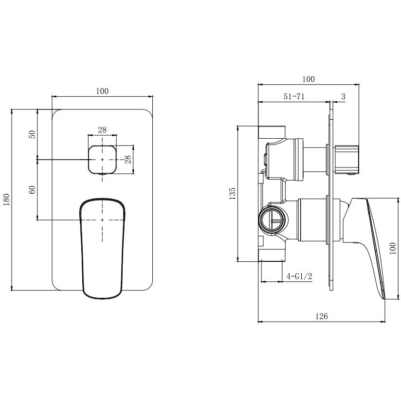 - В комплекте: смеситель (внешняя и скрытая часть); декоративная накладка на стену из нержавеющей стали