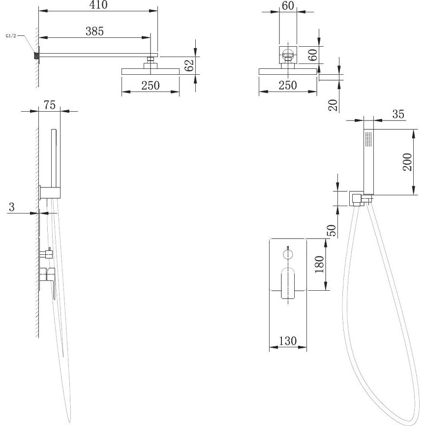 Перед покупкой убедитесь, что система водоснабжения вашей ванной комнаты соответствует стандарту подводки 1/2, чтобы избежать проблем с установкой. Также обратите внимание на габариты вашего душевого пространства, чтобы верхний душ диаметром 25 см удобно вписался в интерьер. Черный матовый цвет требует бережного ухода для поддержания его первозданного вида.