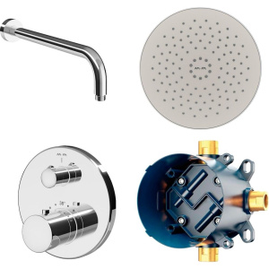 Термостатический смеситель AM.PM Like F8075600 сделан из латуни и оснащен термостатическим картриджем, позволяющим поддерживать стабильную температуру воды. Добавлена защита от ожогов, а также встроенный клапан для предотвращения обратного потока воды. Эта часть требует дополнительной покупки внутреннего элемента и душевого гарнитура.