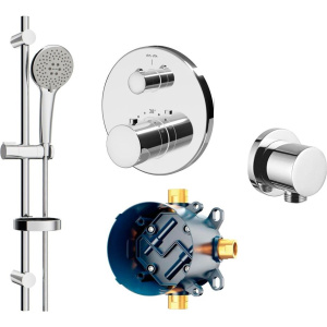 В комплект входит монтажная коробка AM.PM MultiDock F100100, выполненная из прочной комбинации пластика и металла, оптимальная для смесителей и термостатов. Размер монтажной коробки составляет 17 см в ширину. Термостатический смеситель AM.PM Like F8075600, изготовленный из латуни, обеспечивает постоянную температуру воды, а его глянцевая поверхность придает изысканность. Он оснащен термостатическим картриджем и защитными элементами для предотвращения ожогов благодаря ограничителю температуры, а встроенный клапан предотвратит обратный поток воды.