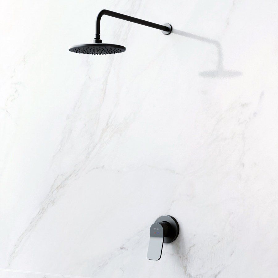 Душевой комплект включает верхний душ с диаметром 22 см и фиксированный излив, обеспечивающий один режим струи. Компоненты изготовлены из латуни, нержавеющей стали и прочного пластика для долговечности и надежности. Матовая поверхность придаёт изделию современный внешний вид и лёгкость в уходе. Установленные аэраторы и форсунки легко очищаются от известковых отложений — достаточно лёгкого нажатия пальцем. Стандартная подводка 1/2 обеспечивает совместимость с большинством систем водоснабжения.