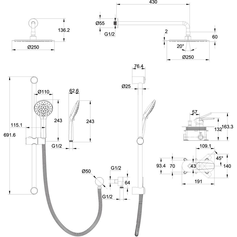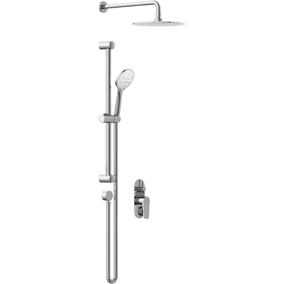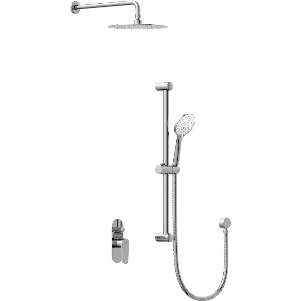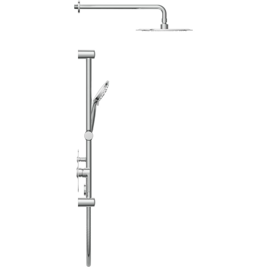 Душевой комплект включает душевой гарнитур, верхний душ с диаметром 25 см, душевую штангу и смеситель. Подключение осуществляется с помощью металлического шланга длиной 150 см, который соответствует стандарту подводки 1/2. Практичный переключатель потоков позволяет легко выбирать между 1 режимом струи верхнего душа и 5 режимами ручной лейки. Надежный керамический картридж обеспечивает долгий срок службы. Гарантия на картридж составляет 5 лет, на корпус — 12 лет, и 2 года на весь душевой комплект. Производство осуществляется в Польше.