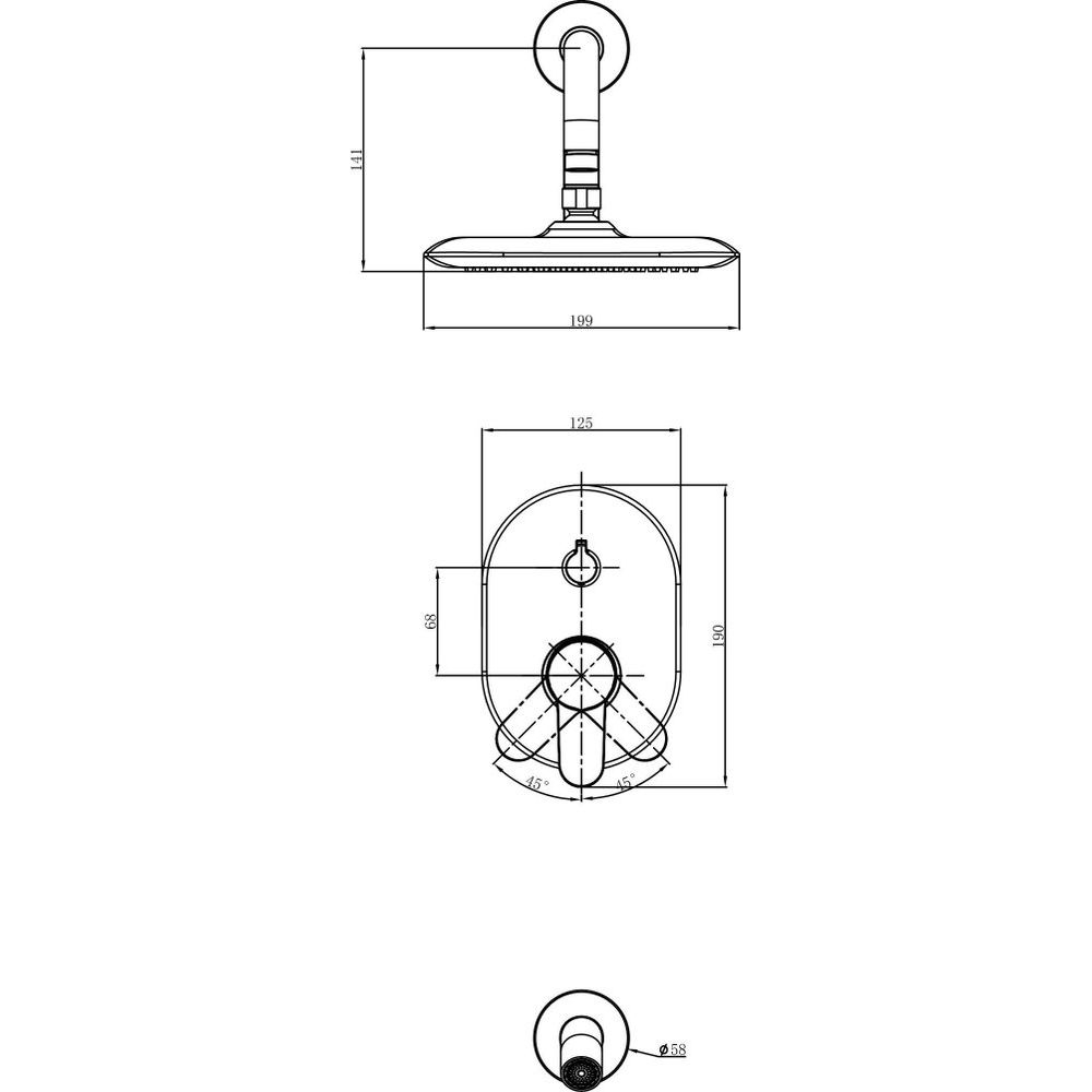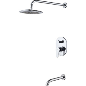 Душевой комплект включает в себя верхний душ диаметром 19.9 см, излив длиной 18.5 см и смеситель для ванны с душем. Изделие имеет фиксированный излив и оснащено керамическим картриджем, обеспечивающим надежность работы. Подключение осуществляется через стандарт подводки 1/2, что делает установку простой и быстрой. Кронштейн для верхнего душа и переключатель потоков сделали комплект идеальным решением для вашей ванной комнаты.