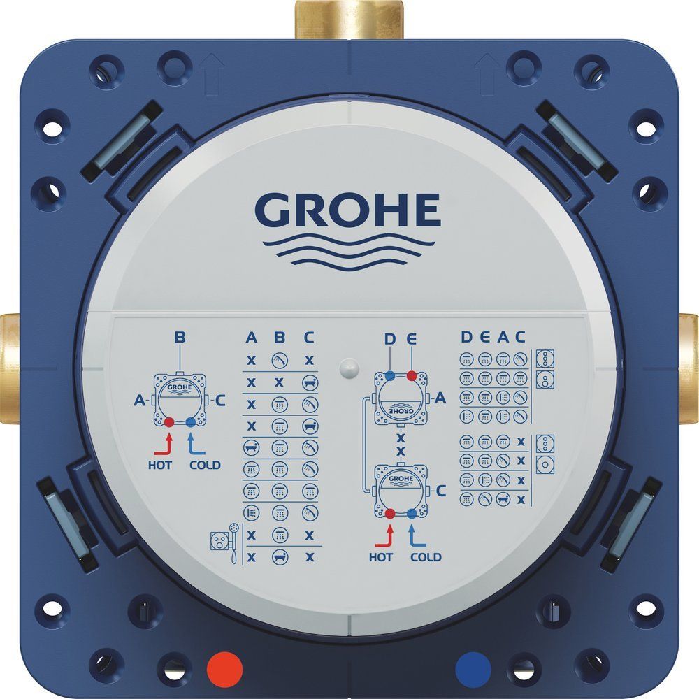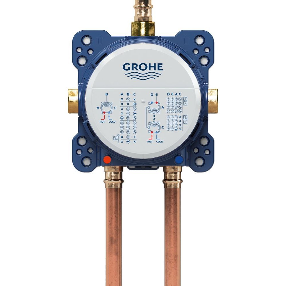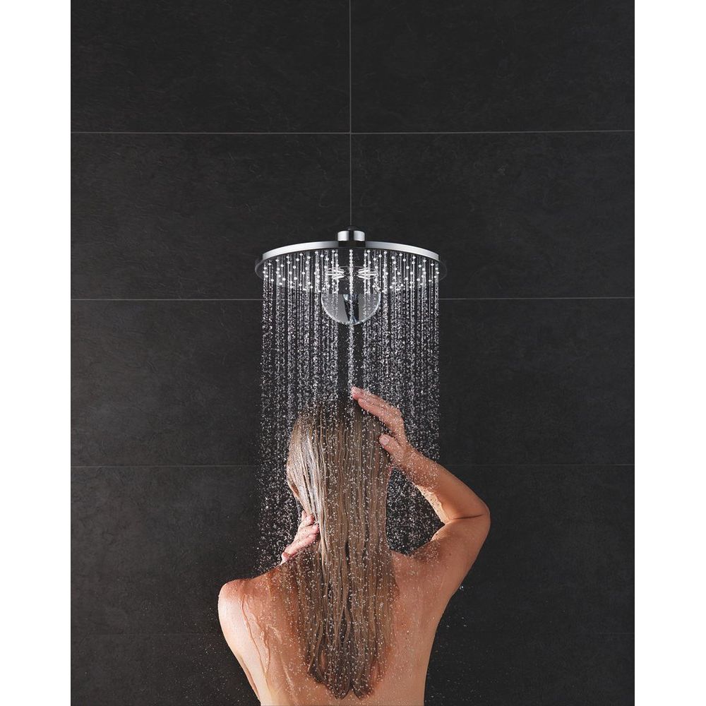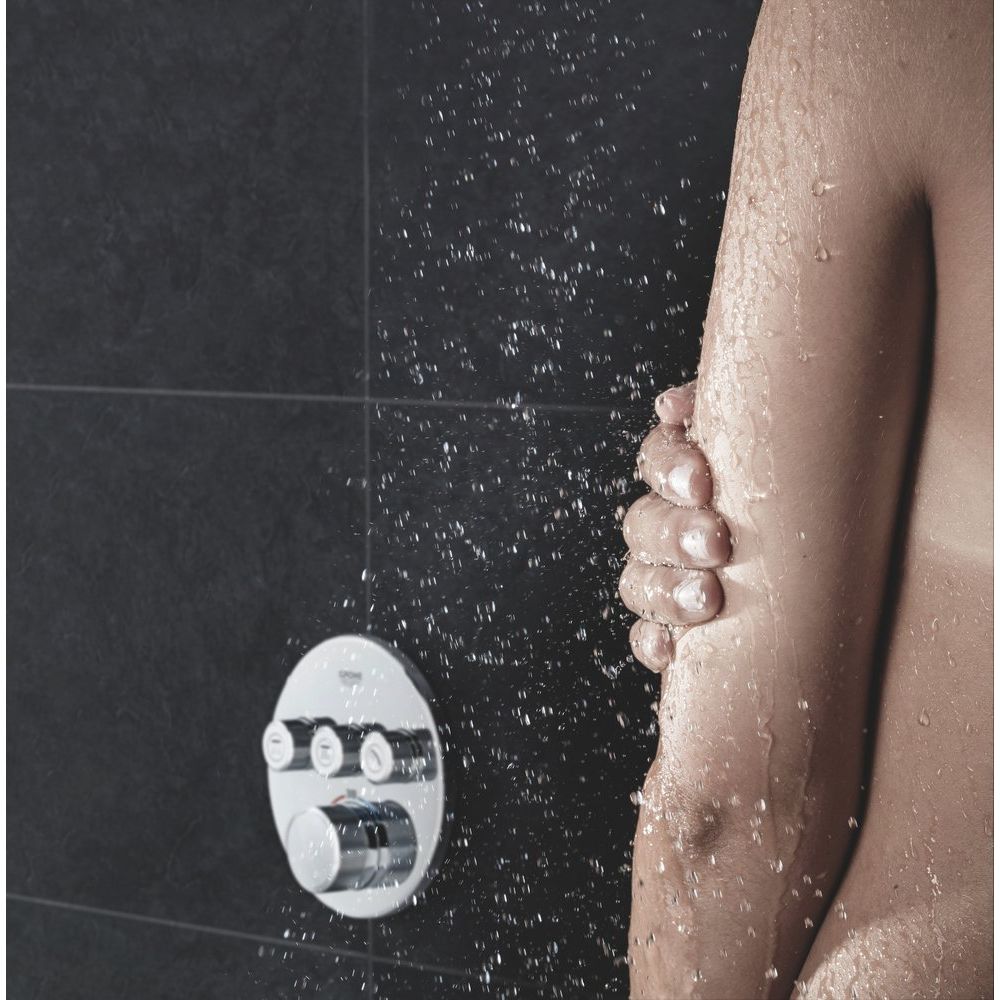 Компактная скрытая часть Grohe Smartbox размером 17.6x12x17.6 см из латуни и пластика служит основой для смесителя, термостата и переключателей потоков. Термостатический смеситель Grohe Grohtherm SmartControl обеспечивает стабильную температуру воды с помощью картриджа и встроенного температурного ограничителя. Душевой гарнитур Grohe Euphoria Cosmopolitan высотой 21.6 см оснащен шлангом длиной 150 см с двойной защитой от перекручивания и легкой чисткой. Верхний душ Grohe Rainshower SmartActive диаметром 31 см предлагает два режима струи и специальное антиизвестковое покрытие.