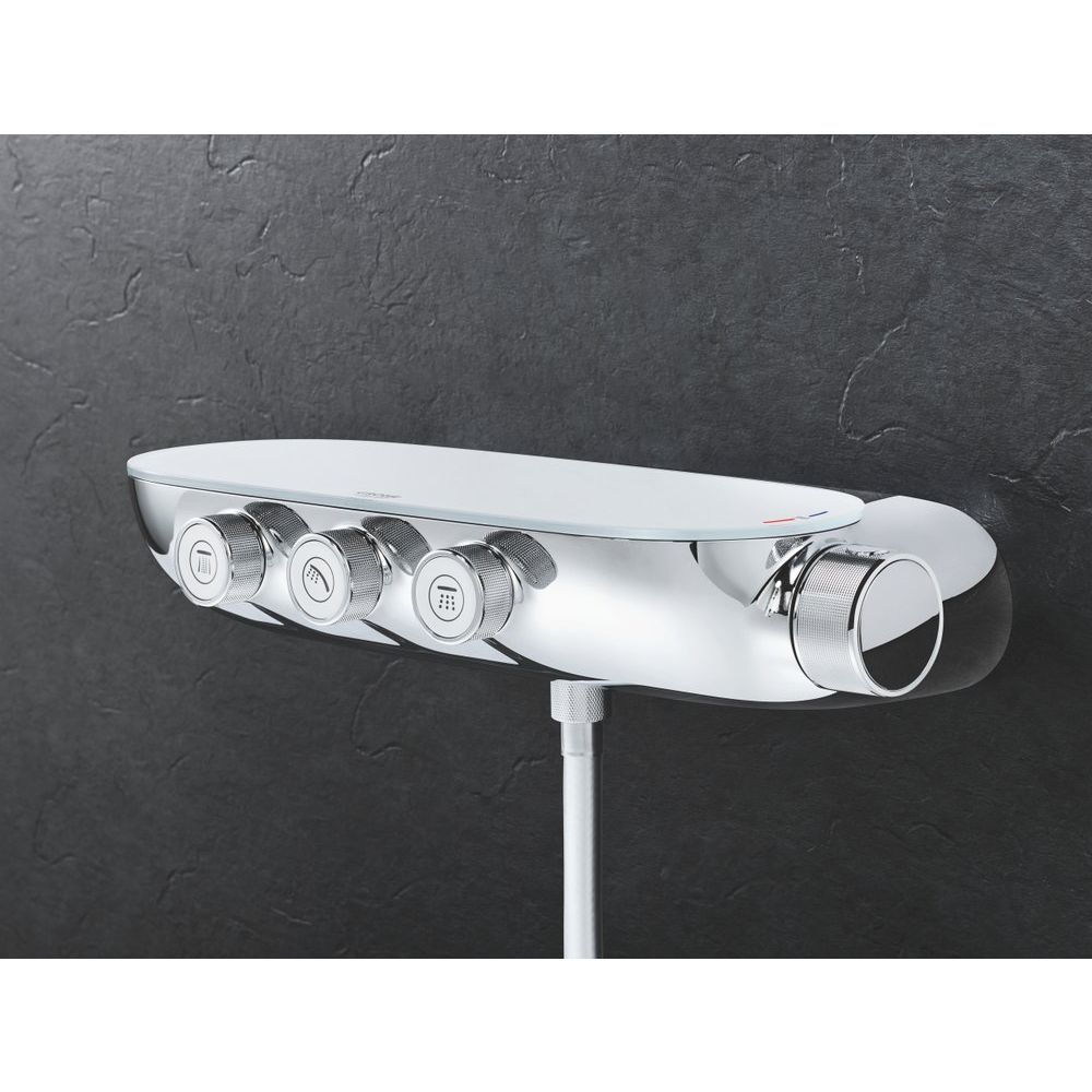 Душевой комплект Grohe Rainshower SmartControl Rainshower SmartControl duo 26443000 предлагает превосходное сочетание стиля и функциональности. Благодаря сочетанию технологий GROHE, таких как PureRain/GROHE Rain O2 spray* и TrioMassage, вы сможете насладиться различными режимами струи, адаптированными к вашим потребностям. Встроенный термоэлемент GROHE TurboStat и технология CoolTouch надежно защищают вас от возможных ожогов, а инновационная система EcoJoy обеспечивает оптимальный расход воды без потери качества водных процедур. Полка EasyReach добавляет удобство, позволяя с комфортом расположить необходимые аксессуары прямо во время душа.