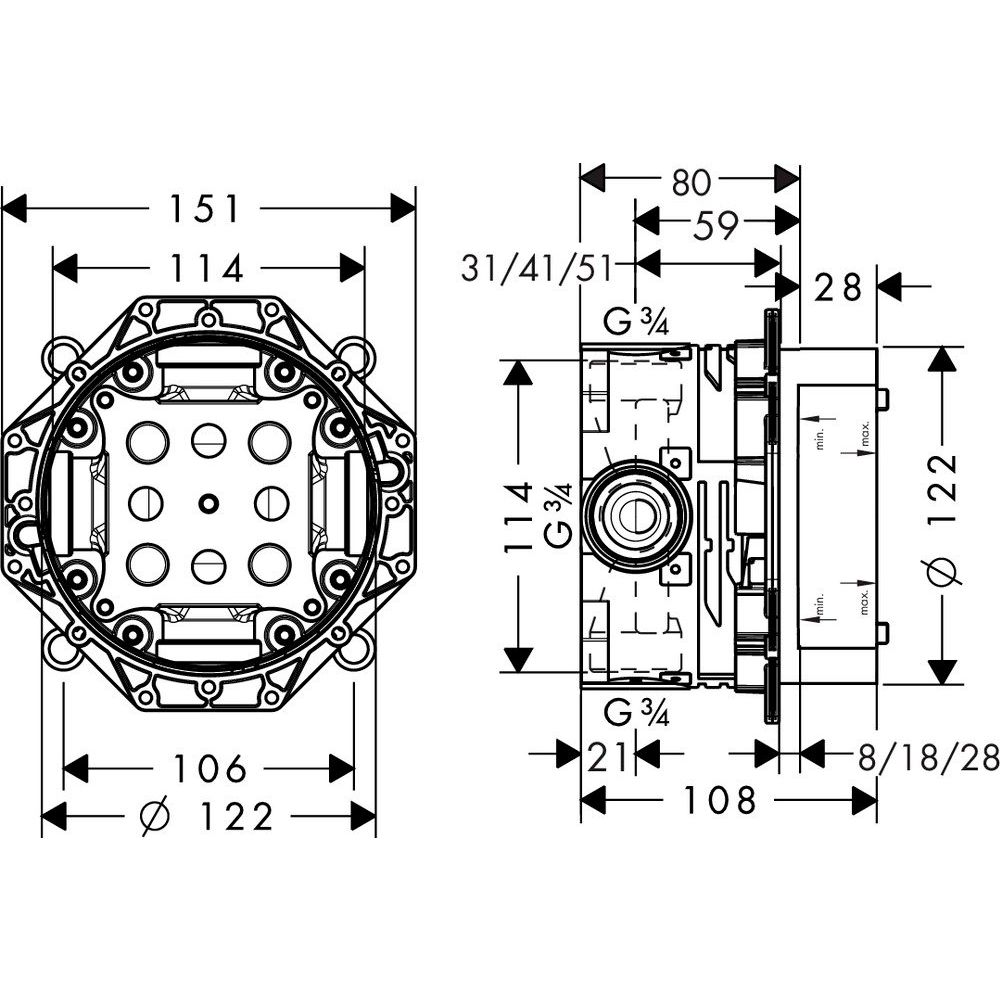Комплект Hansgrohe Croma Select E предназначен для установки в ванную комнату с предустановленной системой водоснабжения 3/4. Благодаря термостатическому картриджу, вы сможете избежать печальных случаев ожога горячей водой. Подводка и установка требует базовых сантехнических навыков, поэтому при необходимости рекомендуется проконсультироваться с профессионалом. Убедитесь, что ваша водопроводная система соответствует необходимым стандартам, чтобы насладиться всеми преимуществами комплекта.