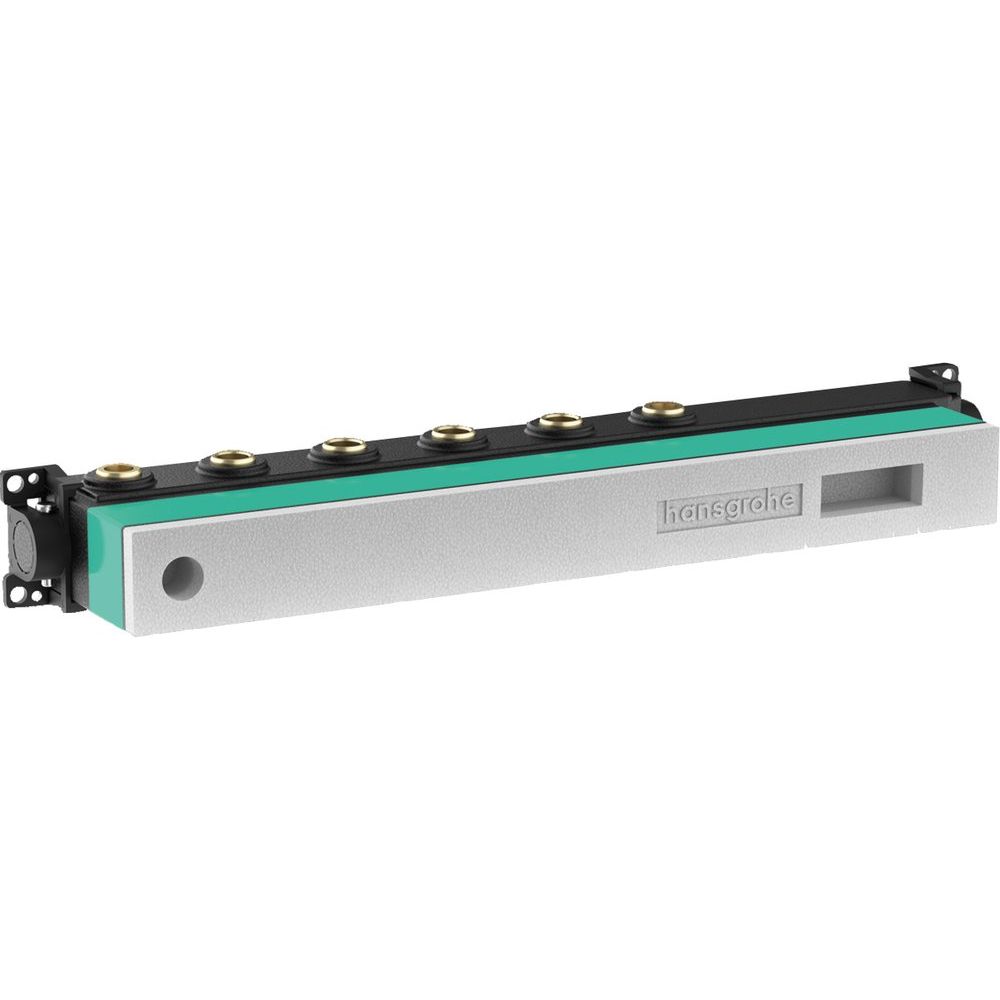 Скрытая часть Hansgrohe RainSelect изготовлена из латуни и пластика, имеет размеры 64.6x8.7x8.4 см и рассчитана на работу с термостатами. Она обеспечивает долгий срок службы благодаря качественным материалам.