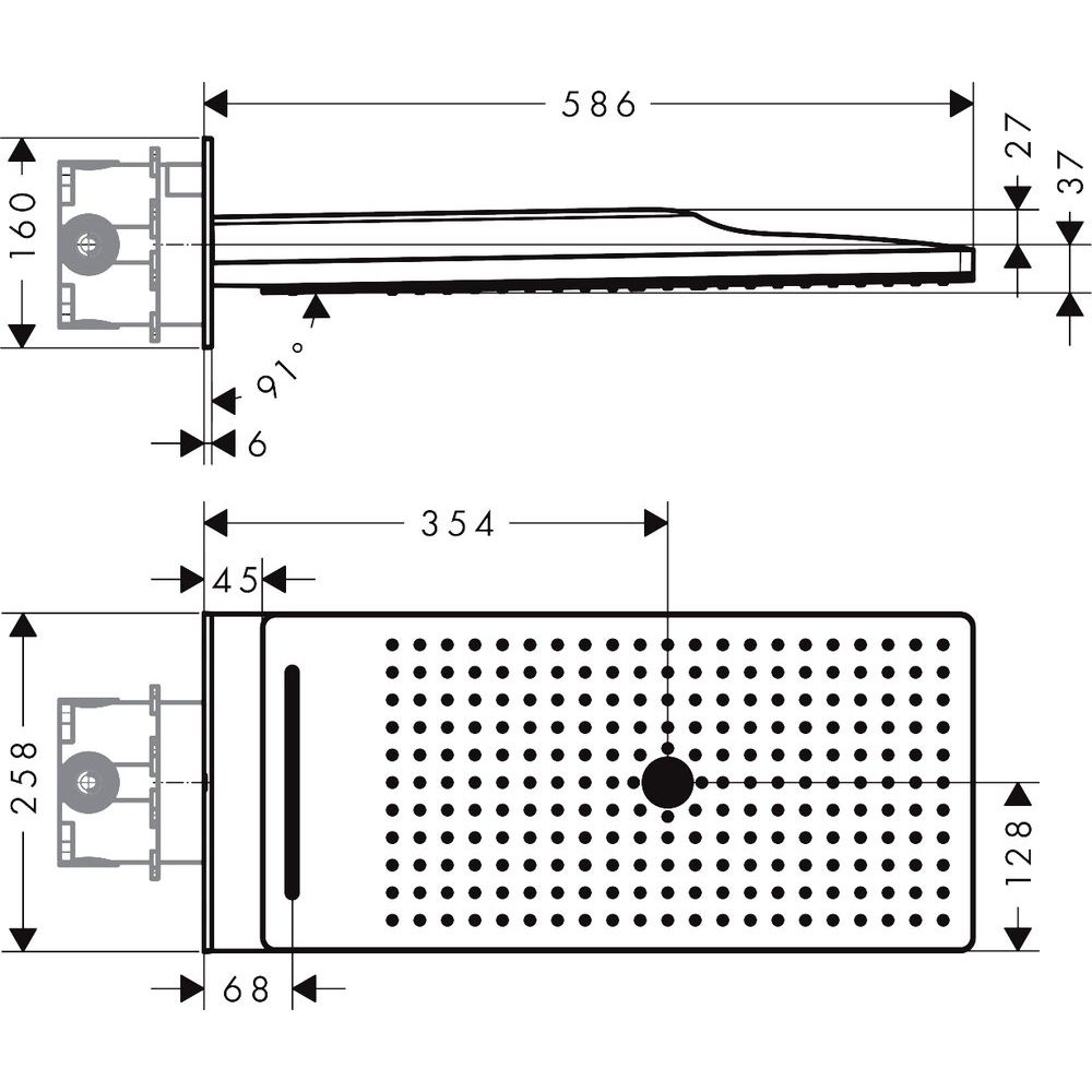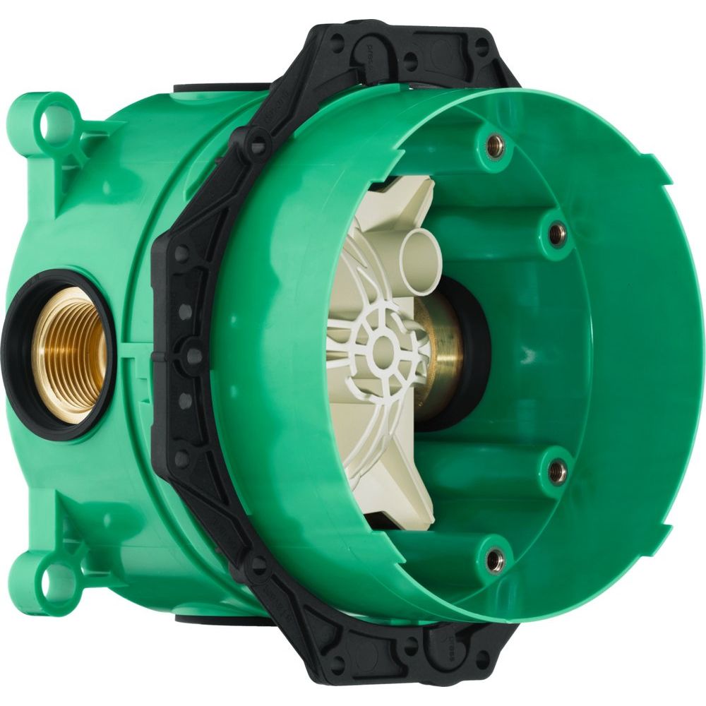 Система поставляется с несколькими ключевыми компонентами, включая скрытую часть Hansgrohe Ibox Universal, подходящую для смесителей и термостатов, а также выполненную из пластика и металла. Она компактна и легко встраивается, размеры составляют 15.1x10.8x15.1 см.