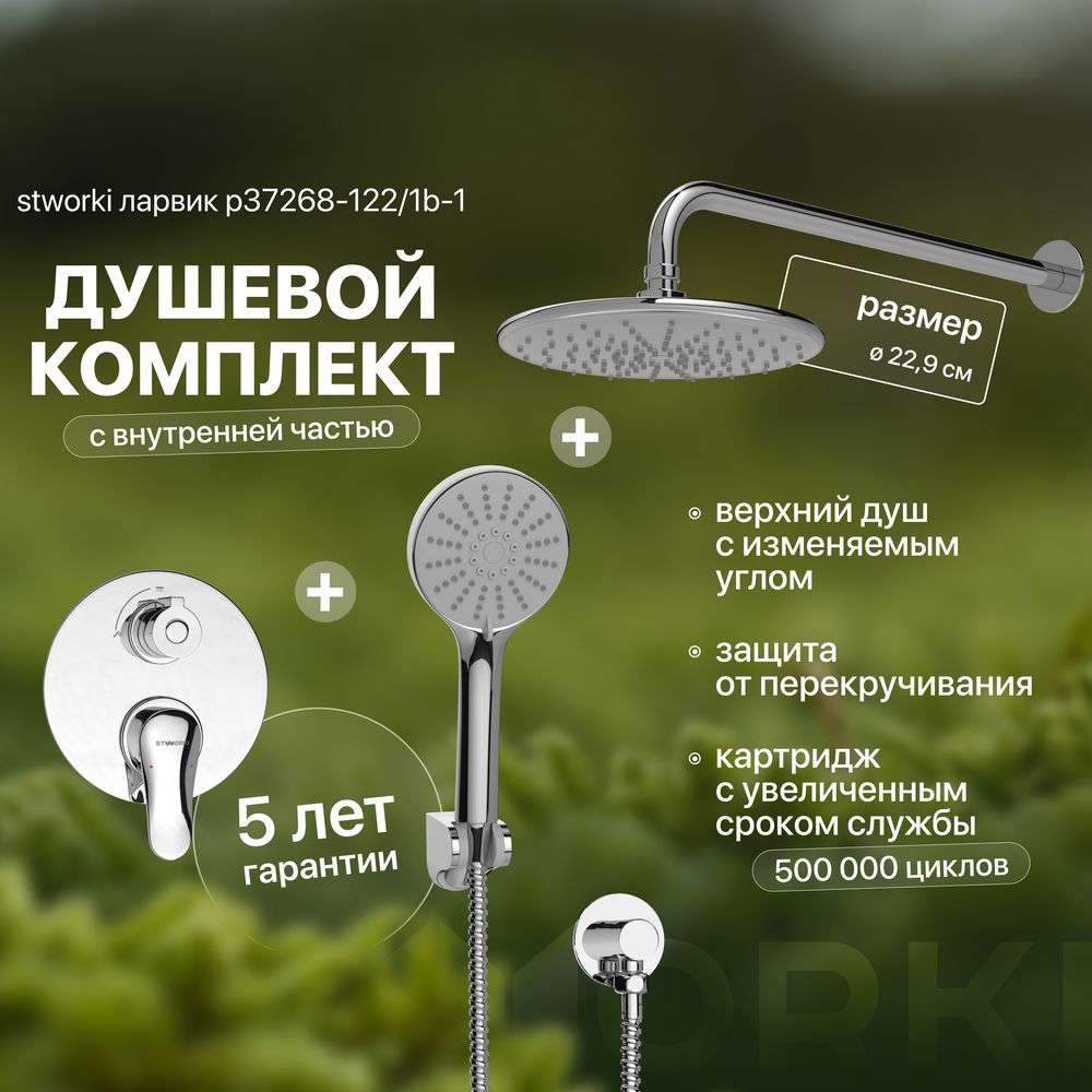 Прежде чем остановить выбор на душевом комплекте STWORKI Ларвик, учтите, что установка требует стандартного подключения на 1/2 дюйма, что делает его совместимым с большинством современных систем водоснабжения. Гарантия на изделие составляет 5 лет, что подтверждает его надежность и качество. Антиизвестковое покрытие позволит сэкономить время на уходе за комплектом, сохраняя его первозданный вид. Обратите внимание на наличие в комплекте всех необходимых элементов для установки и комфортного использования.