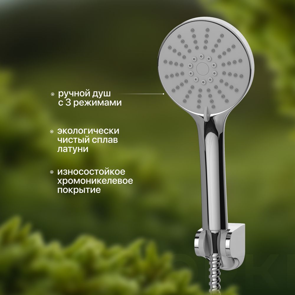 - Многофункциональность обеспечивается 3 режимами струи ручной лейки.