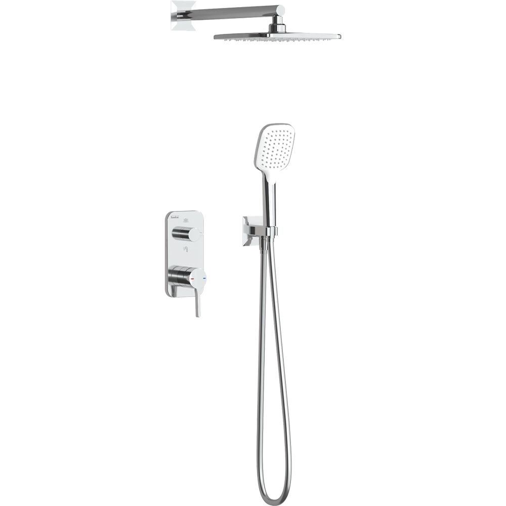Душевой комплект Teska Alinda AS2201 включает в себя душевой гарнитур, верхний душ размером 25 см с одним режимом струи и душевую лейку также с одним режимом. Смеситель для ванны с душем гарантирует плавное переключение потоков благодаря керамическому картриджу. Шланг длиной 150 см оснащен специальными соединениями с функцией антиперекручивания и выполнен из прочного пластика. Стандартный размер подводки 1/2 подходит для большинства современных установок.