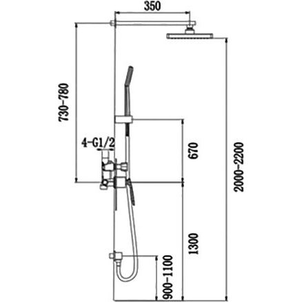 - Функциональность и комфорт: верхняя лейка с поворотом на 45°, два режима ручного душа.