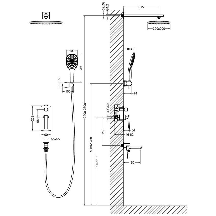 В состав душевого комплекта входят душевой гарнитур, верхний душ диаметром 30 см, смеситель для ванны, излив длиной 15 см и настенный держатель. Потрясающая матовая поверхность изделий придаст вашей ванной комнате свежий и стильный вид. Встроенный девиатор автоматически переключает поток с душа на излив при закрытии воды, обеспечивая экономию и удобство использования. Ручная лейка предлагает на выбор три различных режима струи, а металлический шланг длиной 150 см дополнен керамическим картриджем для длительной службы. Стандарт подводки 1/2 делает установку максимально простой и понятной.