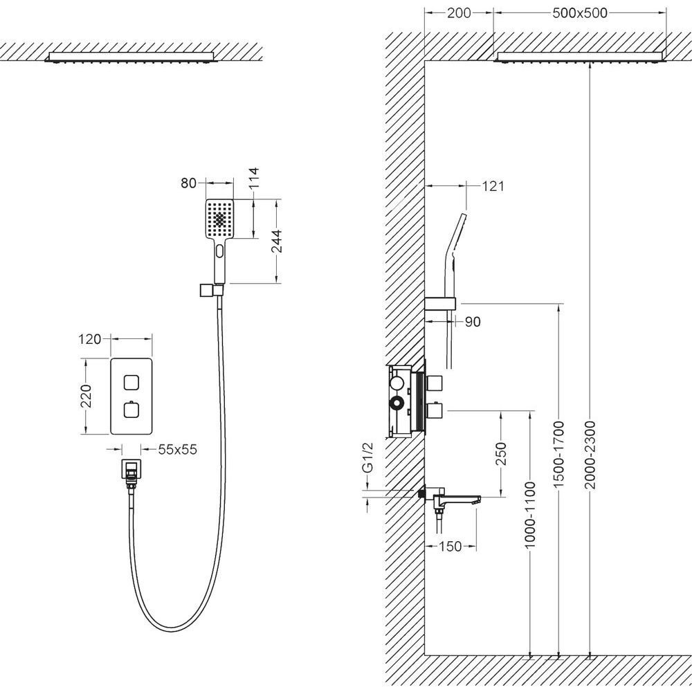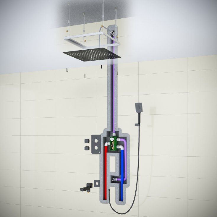 Душевой комплект включает в себя душевой гарнитур и верхний душ размером 50 см с одним режимом струи, а также ручную лейку с аналогичным режимом. Потоки воды легко переключаются благодаря встроенному девиатору, который автоматически перенаправляет поток с душа на излив при закрытии воды. Поворотный излив длиной 15 см и металлический шланг длиной 150 см обеспечивают дополнительный комфорт. Оборудование снабжено керамическим картриджем и аэратором для экономии воды. Стандарт подводки 1/2 обеспечивает совместимость с большинством систем.