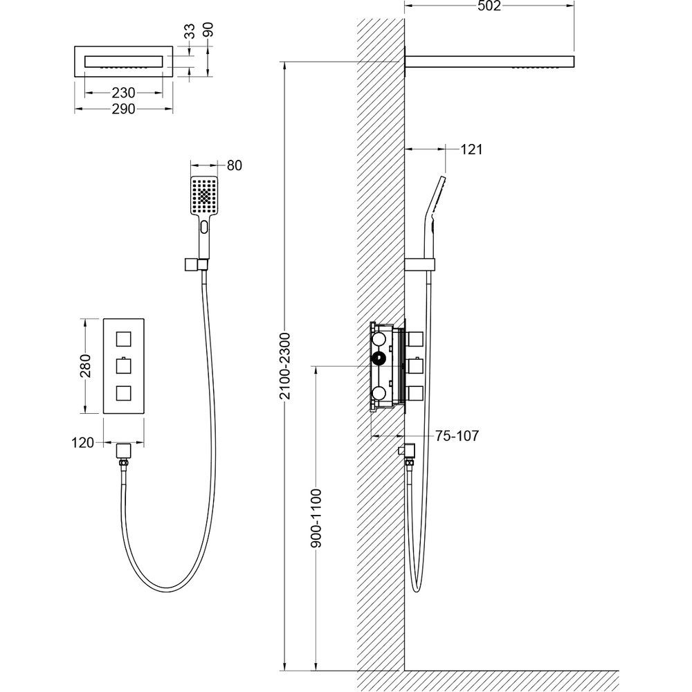 - Многофункциональность — 2 режима струи верхнего душа и 3 режима ручной лейки.