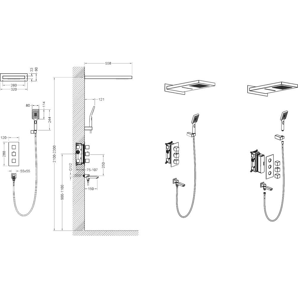 Душевой комплект включает в себя верхний душ диаметром 55.8 см, который предлагает два режима струи. Ручная лейка отличается тремя режимами струи для вашего максимального комфорта. Излив имеет длину 15 см и оснащен поворотным механизмом. Все компоненты произведены из латуни с металлическим шлангом длиной 150 см и стандартом подводки 1/2. Керамический картридж обеспечивает надежную работу смесителя для ванны с душем, а встроенный термостат гарантирует комфортную температуру воды. Переключатель потоков и аэратор добавляют дополнительное удобство в использовании.
