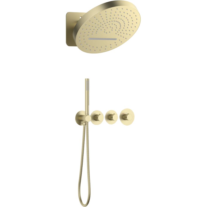 Душевой комплект Timo Saona SX-2329/17SM в матовом золоте — это стильное и функциональное решение для вашей ванной комнаты. Завоевав доверие как у профессионалов, так и у любителей, он сочетает в себе передовые технологии и элегантный дизайн. Данный комплект включает в себя все необходимое для создания комфортной атмосферы в душе, добавляя элемент роскоши в повседневные водные процедуры.