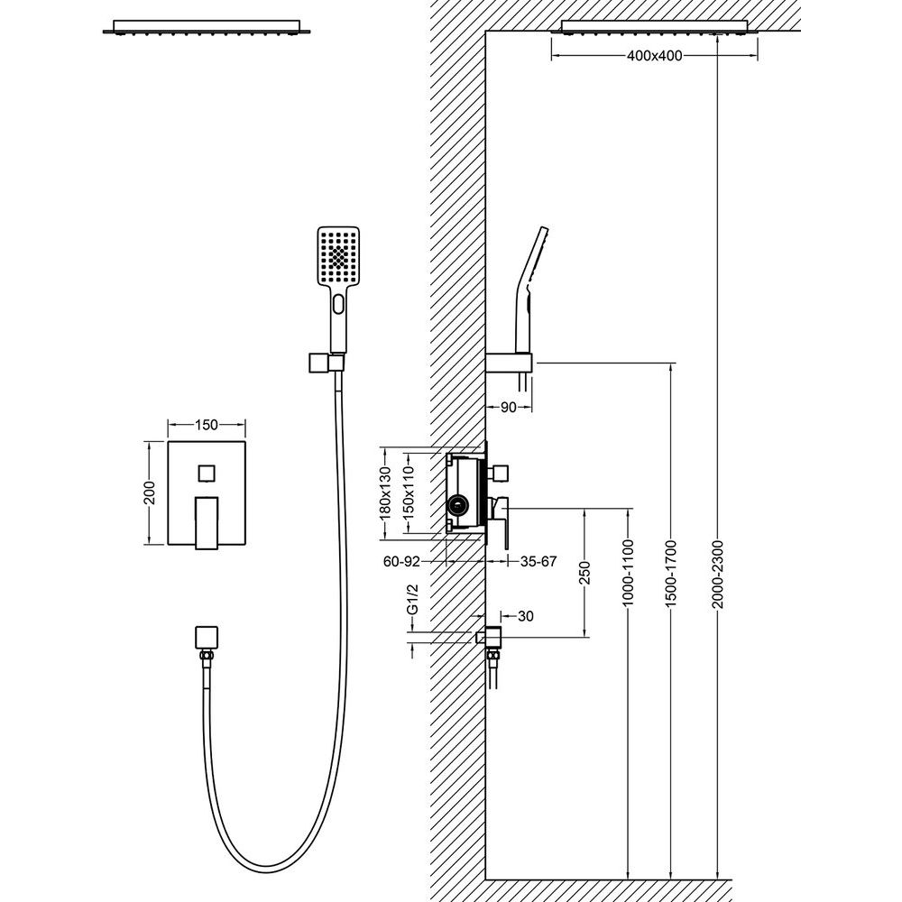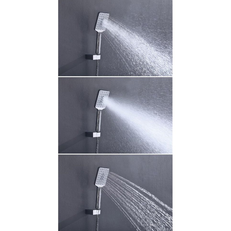 Душевой комплект состоит из душевого гарнитура с верхним душем диаметром 40 см, смесителя и настенного держателя. Верхний душ обеспечивает один режим струи, а ручная лейка — три, что позволяет вам настроить поток воды под ваши предпочтения. Длина металлического шланга составляет 150 см, обеспечивая удобство использования. Керамический картридж в смесителе легко справляется с регулировкой воды, а стандарт подводки 1/2 гарантирует простоту установки. В комплекте предусмотрены душевой шланг и переключатель потоков.