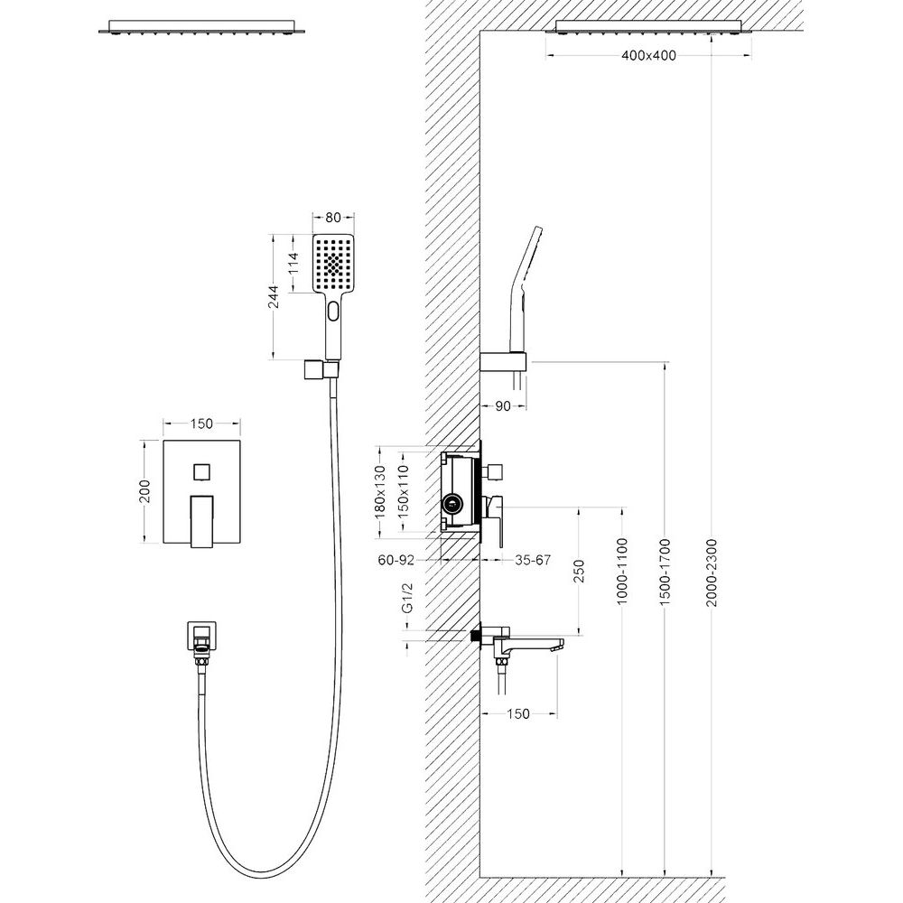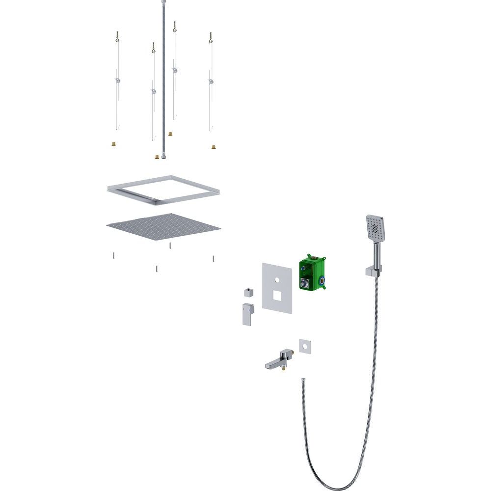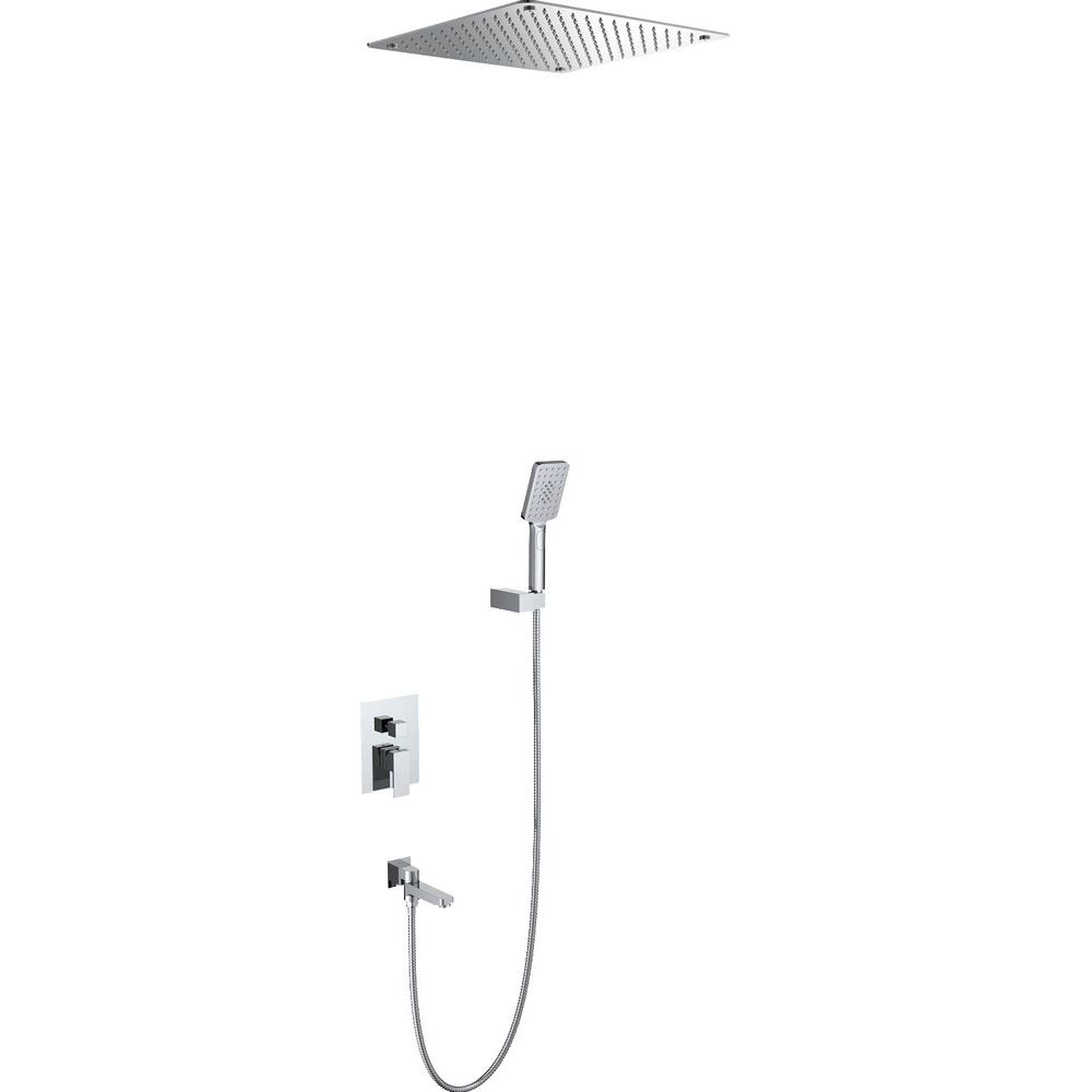 Душевой комплект включает в себя гарнитур, верхний душ диаметром 40 см и смеситель для ванны с душем. Верхний душ поддерживает один режим струи, в то время как ручная лейка — три режима. Длина металлического шланга составляет 150 см, а керамический картридж обеспечивает долгий срок службы. Поворотный излив длиной 15 см добавляет удобства, а стандарт подводки — 1/2. Комплект оснащен аэратором и экономными функциями расхода воды.