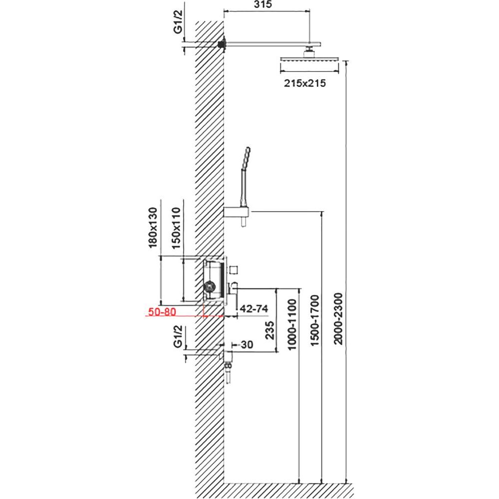 Душевой комплект включает в себя душевой гарнитур, верхний душ с диаметром 21.5 см, смеситель для душа, настенный держатель и шланговое подключение. Верхний душ и ручная лейка предлагают один режим струи, что обеспечивает равномерное распределение потока воды. Длина металлического шланга составляет 150 см, позволяя свободно перемещать лейку во время использования. Комплект оснащен фиксированным изливом и керамическим картриджем для плавного управления потоком воды. Стандарт подводки — 1/2, что делает установку простой и удобной.