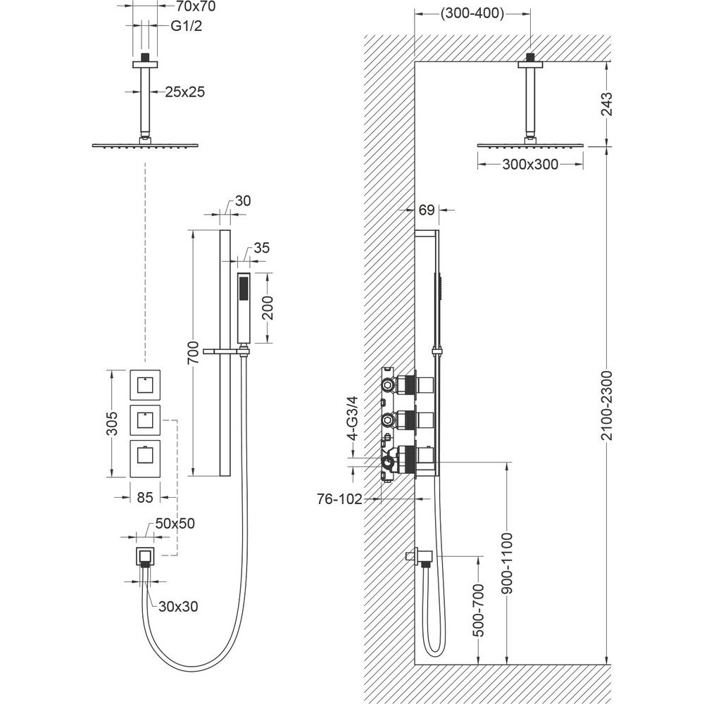 В комплекс входят душевой гарнитур, верхний душ размером 30 см и душевая штанга. Смеситель для душа оснащен фиксированным изливом и переключателем потоков для удобной эксплуатации. Металлический шланг длиной 150 см с поворотными конусами предотвращает перекручивание, добавляя комфорт при использовании. Ограничение температуры воды и стандартные подводки 1/2 создают дополнительные преимущества в безопасности. Сдержанная глянцевая поверхность добавляет эстетичности всему комплекту.