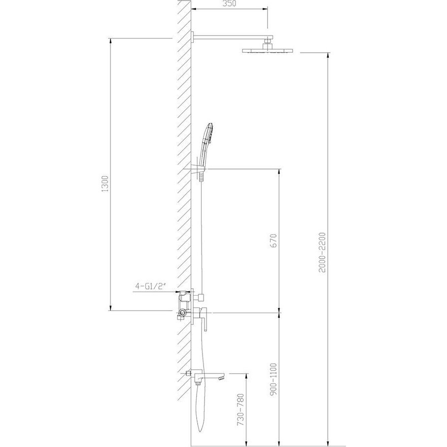 - Регулируемый угол наклона верхнего душа для персонализированного комфорта.