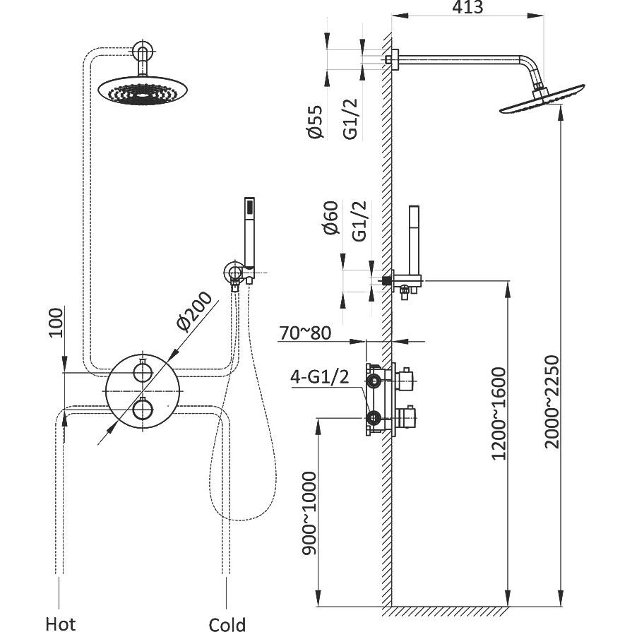 Душевой комплект включает в себя верхний душ диаметром 27.5 см с двумя режимами струи, что позволяет выбрать идеальный вариант для каждого случая. Ручная лейка также оснащена двумя режимами, а пластиковый шланг длиной 150 см гарантирует удобство эксплуатации и оснащен поворотными конусами, препятствующими перекручиванию. Продукт выполнен из высококачественной латуни с керамическим картриджем и имеет стандарт подводки 1/2. Душевой комплект оснащен функциями ограничения температуры и экономии воды, специальная поверхность обеспечивает легкое очищение, что значительно упрощает уход за изделием. В комплектацию добавлены душевая лейка, шланг, переключатель потоков и держатель для душа, что делает его полноценным решением для вашей ванной комнаты.