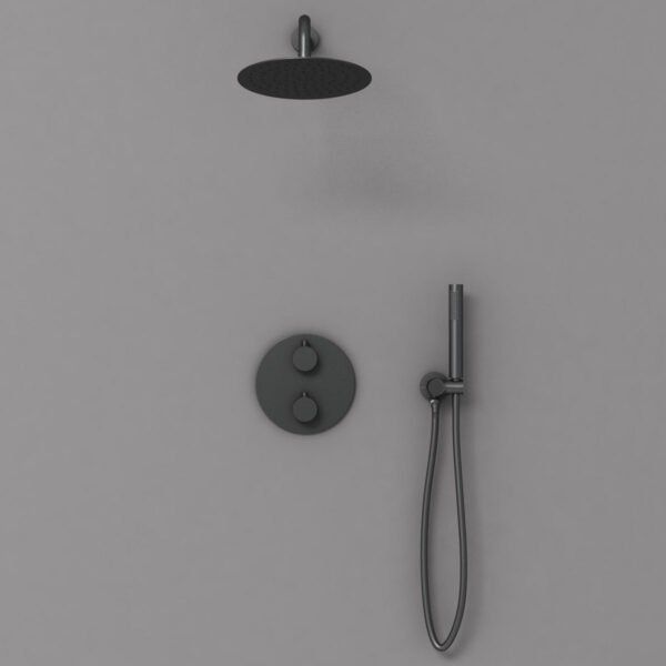 Душевой комплект Vincea VSFW-101TMB в элегантном черном матовом исполнении — это идеальное сочетание современного дизайна и функциональности. Он включает в себя все необходимое для комфортного принятия душа, от верхнего душа до термостатического смесителя, обеспечивая непревзойденное удобство установки и использования. Этот комплект станет стильным акцентом в вашей ванной комнате, добавив ей нотки утонченности и современности.