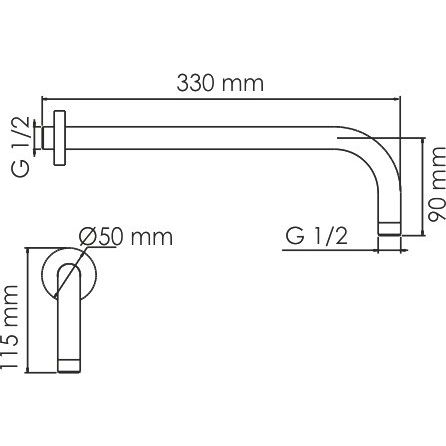 Кронштейн выполнен из прочной латуни с матовой поверхностью. Основные размеры составляют 31.7x11.5 см, с вылетом верхнего душа в 30.9 см. Универсальная подводка размером 1/2 дюйма позволяет легко интегрировать его в различные сантехнические системы. Этот кронштейн идеально подходит для установки с различными моделями верхних душей.