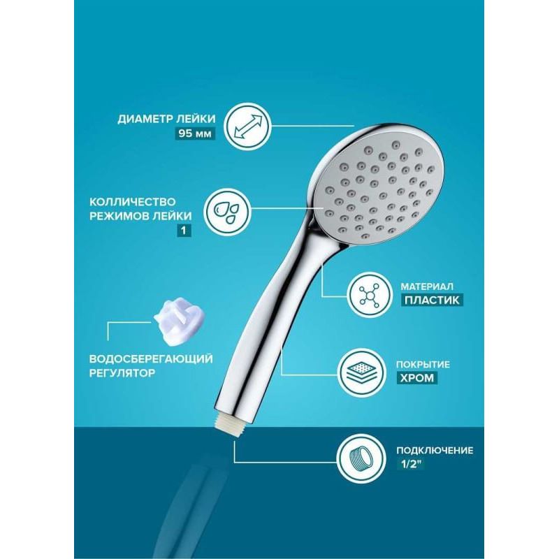 Душевая лейка РМС LE23 оснащена одним режимом струи, что делает её простой и интуитивно понятной в использовании. Диаметр лейки составляет 9,5 см, что оптимально для создания комфортного потока воды. Глянцевая поверхность добавляет эстетическую привлекательность и лёгкость в уходе. Стандартная подводка 1/2 делает установку простой и быстрой. Изделие произведено в России и сопровождается гарантией на 1 год, подтверждающей качество и надежность.