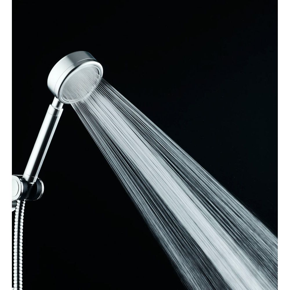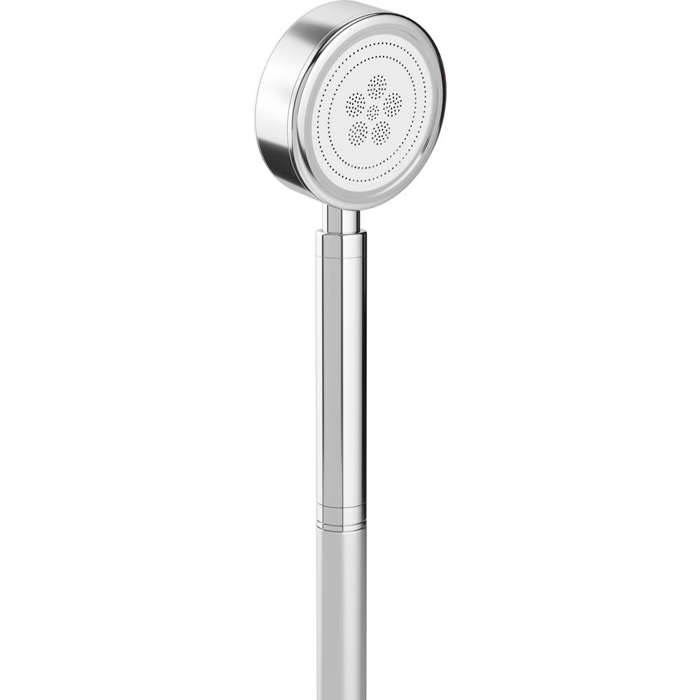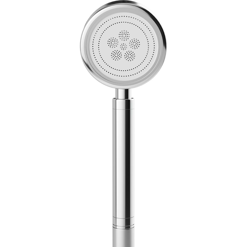 Душевая лейка имеет диаметр 8 см, что позволяет создавать оптимальное покрытие водяного потока. Гладкая глянцевая поверхность подчеркивает стильный вид и защищает от появления налета. Подключение осуществляется через стандартный 1/2 дюймовый шланг, а комплект надежен и устойчив к коррозии, благодаря использованию алюминия.