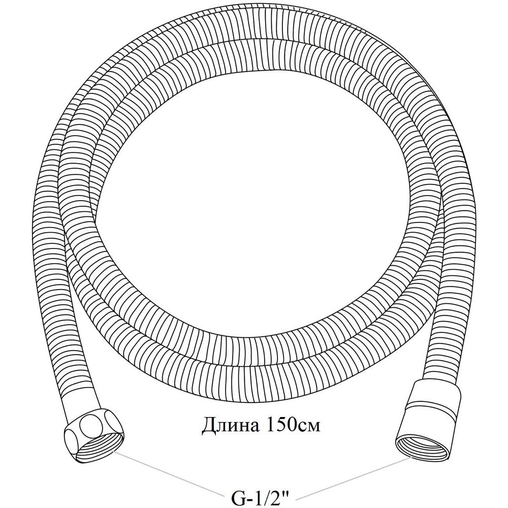 Шланг имеет длину 150 см, обеспечивающую оптимальный комфорт при использовании. В производстве используется нержавеющая сталь, которая гарантирует прочность и долговечность. Особенность данной модели — применение поворотных конусов и специальных подшипников в местах соединения с лейкой и смесителем, что существенно препятствует перекручиванию. Подводка стандартная, 1/2 дюйма, что делает шланг совместимым с большинством душевых систем.