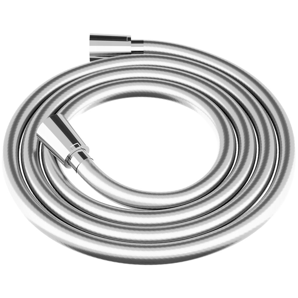 Душевой шланг имеет длину 175 см и изготовлен из усиленного ПВХ с обмоткой на основе стальной проволоки. Места соединений с лейкой и смесителем оснащены поворотным конусом или подшипниками, защищающими от перекручиваний. Подводка стандартная — 1/2 дюйма. Изделие произведено в России и сопровождается гарантией 1 год.