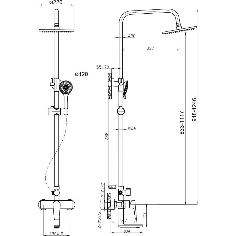 - Регулируемая высота и угол наклона верхнего душа сохранят ваше время и усилия.