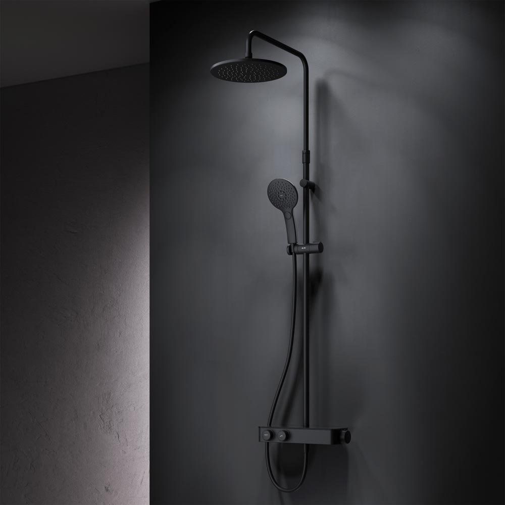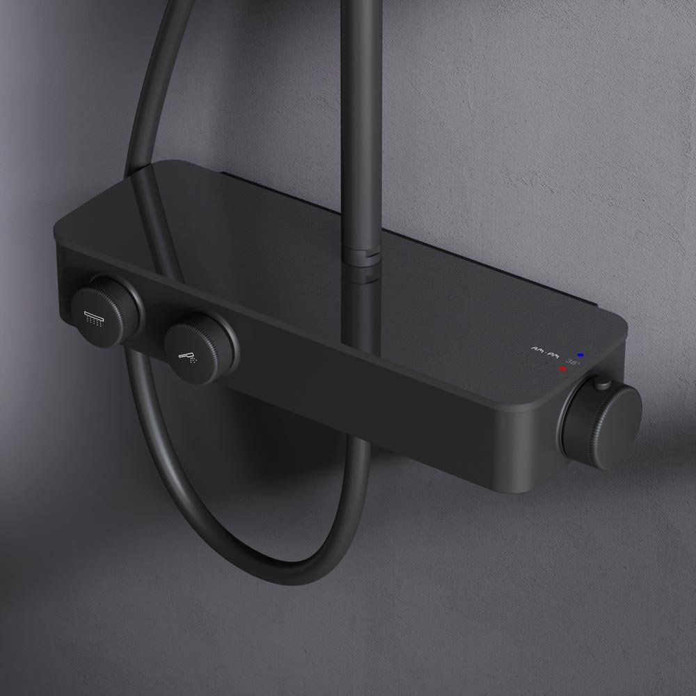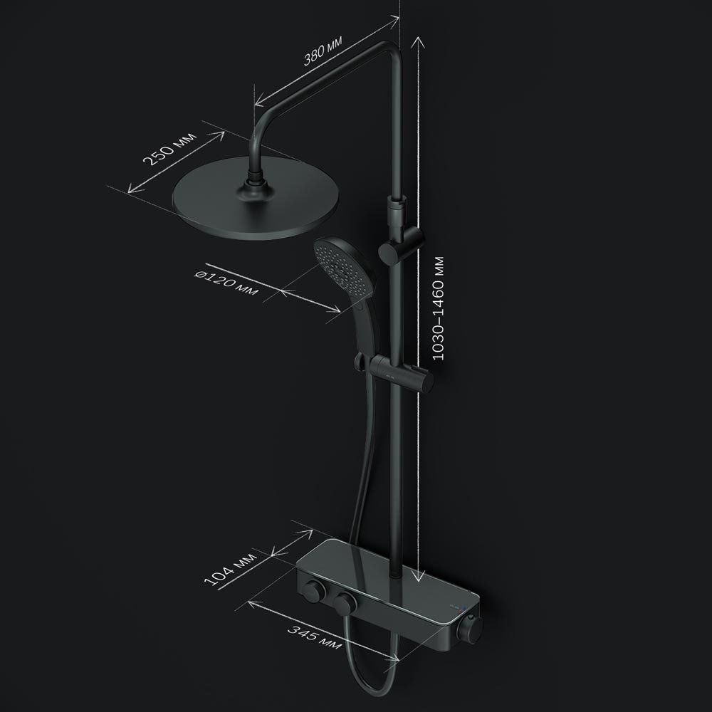 Душевая стойка AM.PM Inspire V2.0 имеет высоту 146 см и вес 6.4 кг. Благодаря термостату, вода всегда будет желаемой температуры. Главные материалы — латунь, нержавеющая сталь и элементы из ПВХ и пластика, обеспечивающие долговечность. Размер верхнего душа составляет 25 см, с вылетом в 42 см, что создает комфортный поток воды. Лейка диаметром 12 см и пластиковый шланг длиной 175 см оснащены поворотными конусами, предотвращающими перекручивание.