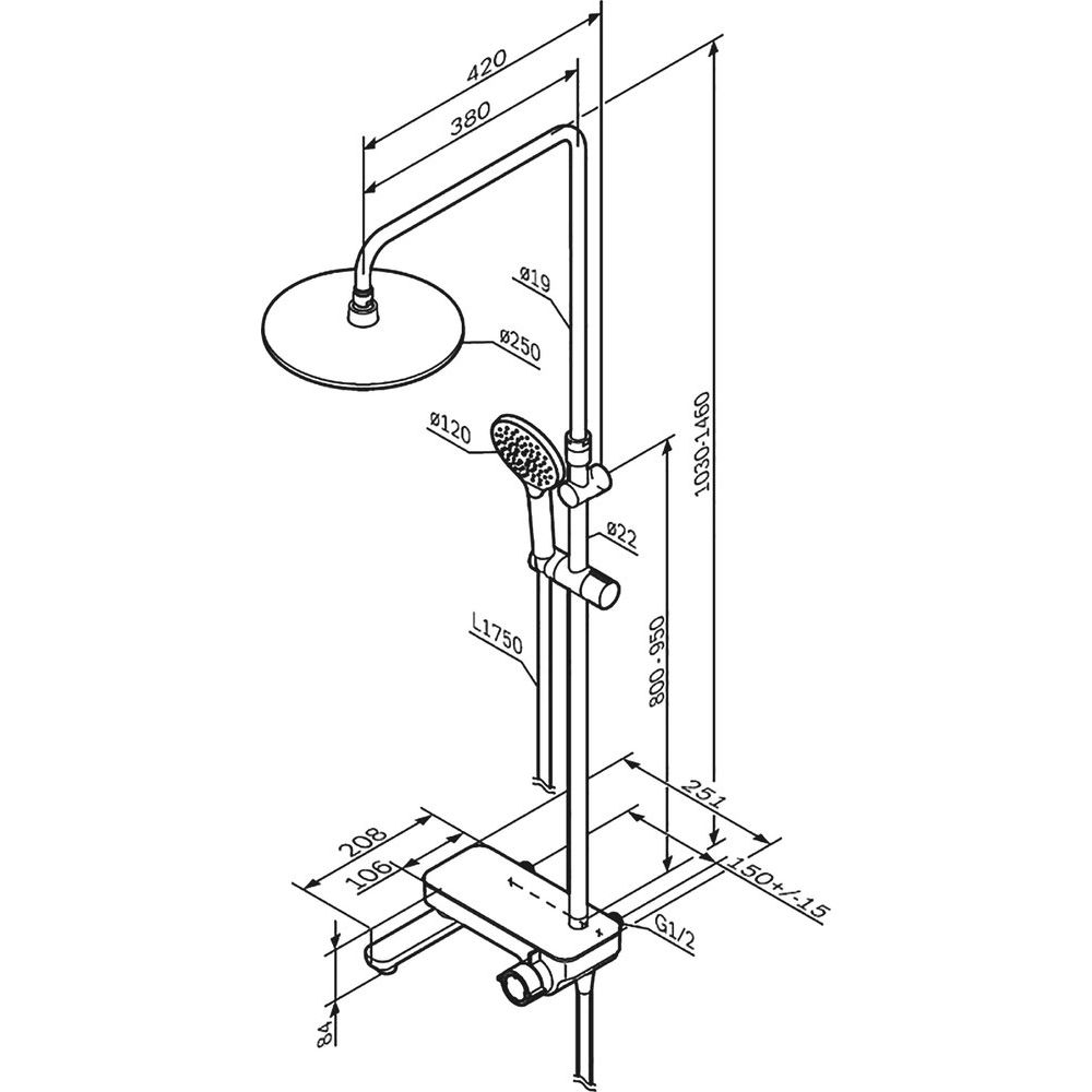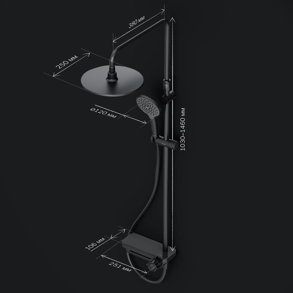 Высота душевой стойки составляет 146 см, что обеспечивает удобство для пользователей разного роста. В комплект входит верхний душ размером 25 см с вылетом 38 см, что создает обширное покрытие для равномерного распределения воды. Лейка диамером 12 см предлагает три комфортных режима струи для ваших индивидуальных предпочтений. Традиционный и поворотный изливы длиной 10.6 см позволяют удобно использовать душ, а пластиковый шланг длиной 175 см предотвращает перекручивание благодаря поворотным конусам и подшипникам.