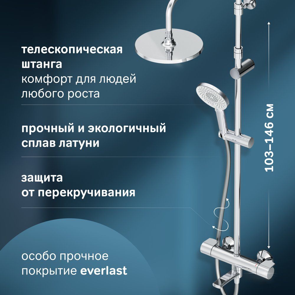 - Высокочувствительный термостатический картридж обеспечивает защиту от ожога