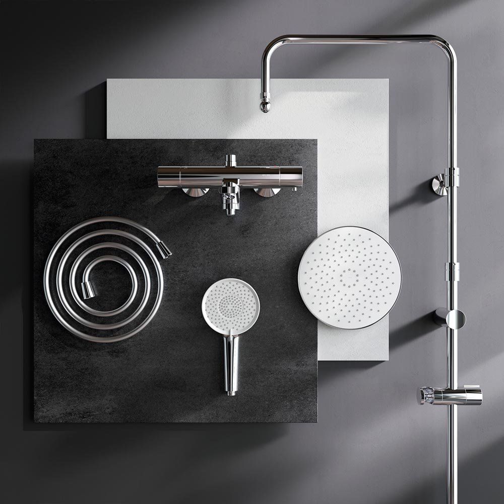 При установке душевой стойки AM.PM X-Joy учтите, что смеситель идет в комплекте, что упростит монтаж и сократит время настройки. Благодаря встроенному термостату, температура воды всегда будет под контролем, обеспечивая безопасность для всей семьи. Телескопическая штанга с диапазоном регулировки в 40 см делает душ подходящим для людей с разным ростом, что особенно удобно для семейного использования. Продукт изготовлен в Германии, что гарантирует высокое качество и долговечность.