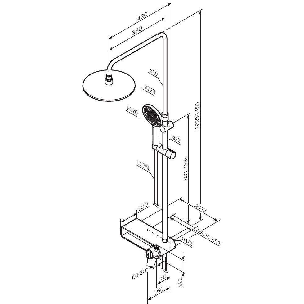 Душевая стойка имеет высоту 157.2 см и весит 5.35 кг. Оснащена латунным корпусом, что гарантирует долгий срок службы. Верхний душ диаметром 22 см располагается на вылете 42 см и предлагает впечатляющее тропическое ощущение. Лейка диаметром 12 см имеет три регулируемых режима струи. Излив длиной 4 см является поворотным и традиционным, а шланг длиной 175 см изготовлен из металла с антискручивающимися соединениями. Встроенный защитный клапан предотвращает обратный поток воды.