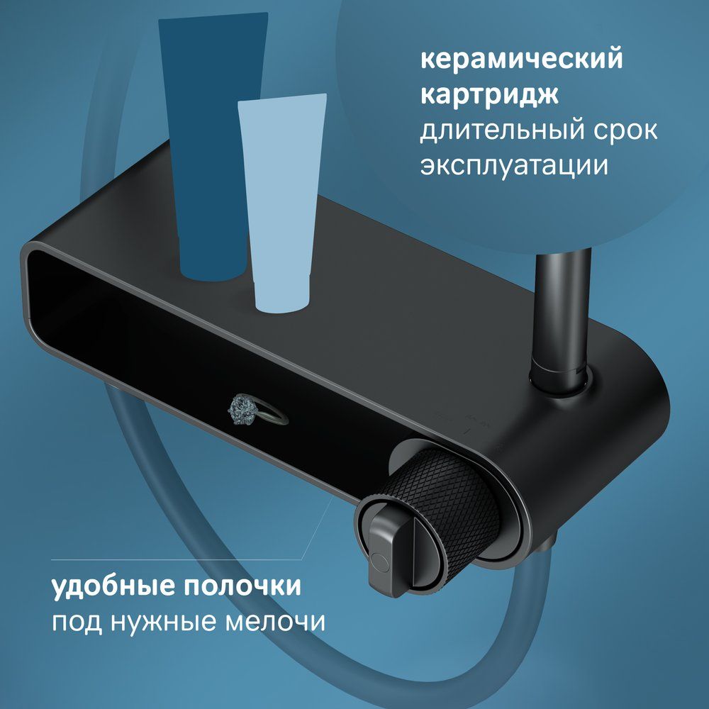 Душевая стойка AM.PM X-Joy F0785A722 в элегантном черном матовом цвете — это сочетание надежности и комфорта. Специально разработанная эргономичная ручка позволяет легко управлять системой даже с мыльными руками, а усовершенствованный термостатический картридж с быстрой реакцией защищает от ожогов, даже если внезапно отключится холодная вода. Регулируемая телескопическая штанга и увеличенный размер тропического душа доставят максимальное удовольствие от принятия водных процедур каждому в вашей семье.