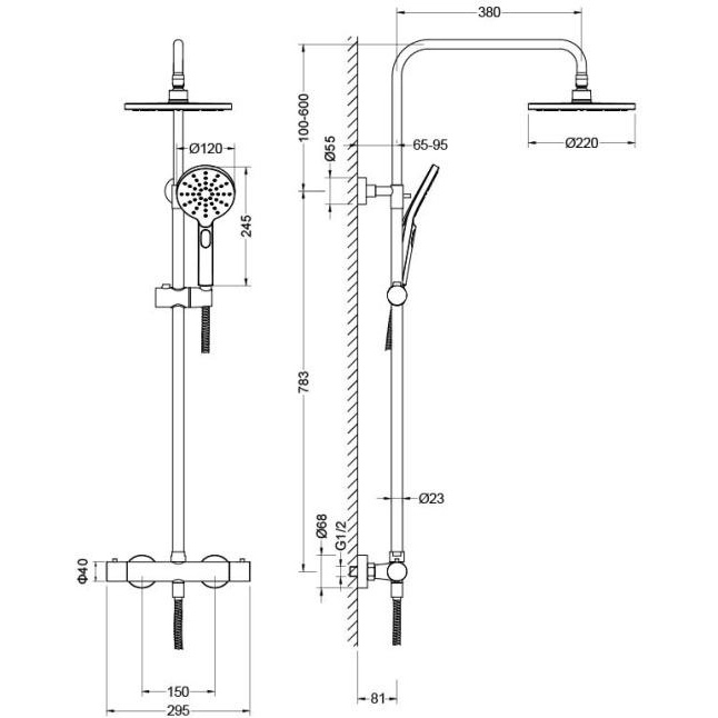 - Душевая штанга из нержавейки, диаметр 23 мм