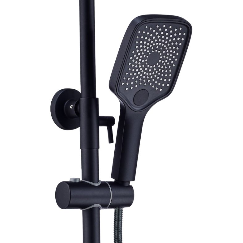 Душевая стойка имеет высоту 113 см и весит 5.8 кг. Оснащена термостатическим картриджем и ограничителем температуры, что делает использование безопасным. Вылет верхнего душа составляет 47 см, а размер лейки — 9 см, с возможностью выбора среди четырех режимов струи. Фиксированный традиционный излив длинной 32 см идеально подходит для наполнения воды. Металлический шланг длиной 150 см оснащен системой предотвращения перекручивания шланга, что значительно увеличивает удобство ежедневного использования. В комплект также входят держатель для душа, переключатель потоков, аэратор и эксцентрики.
