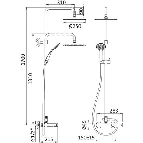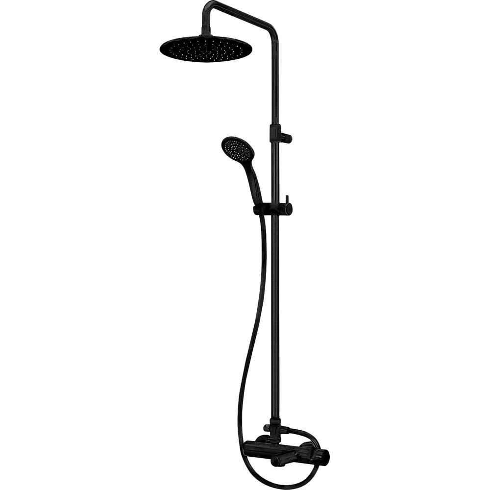 Душевая стойка имеет высоту 173 см и весит 5,5 кг, изготавливается из прочной латуни. Верхний душ диаметром 25 см и вылетом 35 см обеспечит равномерное распределение воды. Душевая лейка диаметром 7,5 см обладает одним режимом струи, а фиксированный излив длиной 21,5 см позволяет направлять поток воды под нужным углом. Металлический шланг длиной 150 см с поворотными соединениями защитит от перекручиваний, а переключатель потоков и эксцентрики в комплекте помогут легко управлять системой.