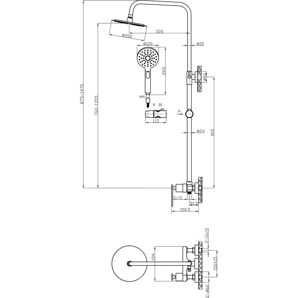 Эта душевая стойка высотой 147 см весит 4 кг и выполнена из высококачественной латуни в хромированном исполнении. Верхний душ диаметром 25 см с вылетом 37.15 см обеспечит вам настоящие ощущения дождевого душа. Ручная лейка диаметром 12 см поддерживает один режим струи и выполнена с пластиковым шлангом длиной 150 см. Прочное соединение шланга предотвращает перекручивание, а удобный переключатель потоков позволяет легко управлять водой.