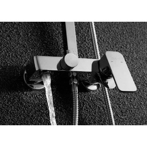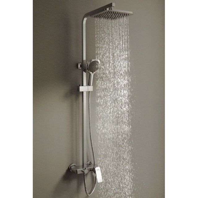 Душевая стойка высотой 125 см выполнена из прочной латуни и покрыта хромом для дополнительно защиты. Верхний душ диаметром 22 см с вылетом 41.3 см обеспечивает расслабляющий поток воды. Лейка диаметром 11.5 см имеет один режим работы, а длина излива составляет 8 см. Прикрепленный металлический шланг длиной 150 см оснащен поворотными конусами для предотвращения перекручиваний. Комплектуется керамическим картриджем для долговечной службы.