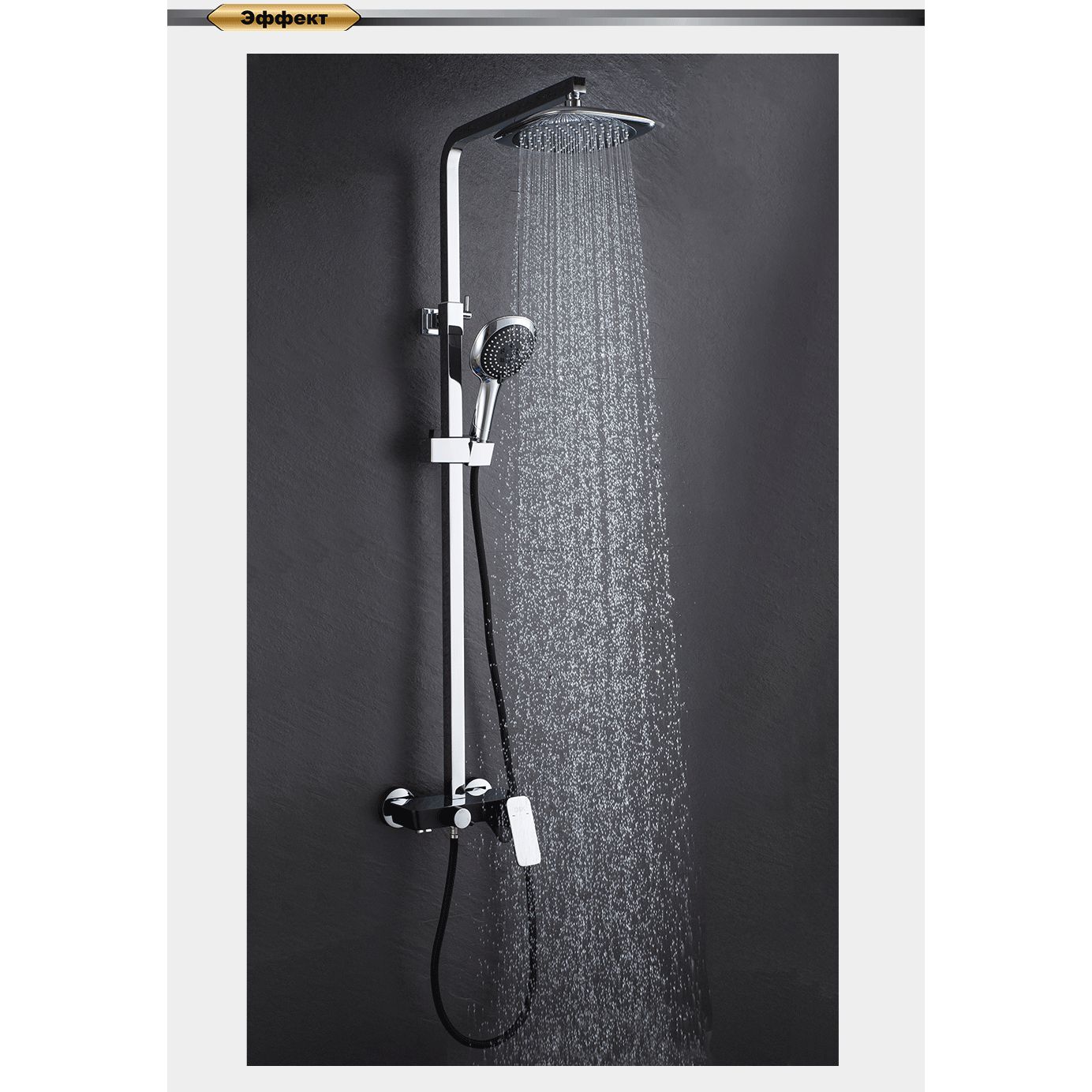 - Большой верхний душ размером 22 см и вылетом 41,3 см способствует комфортному принятию душа.